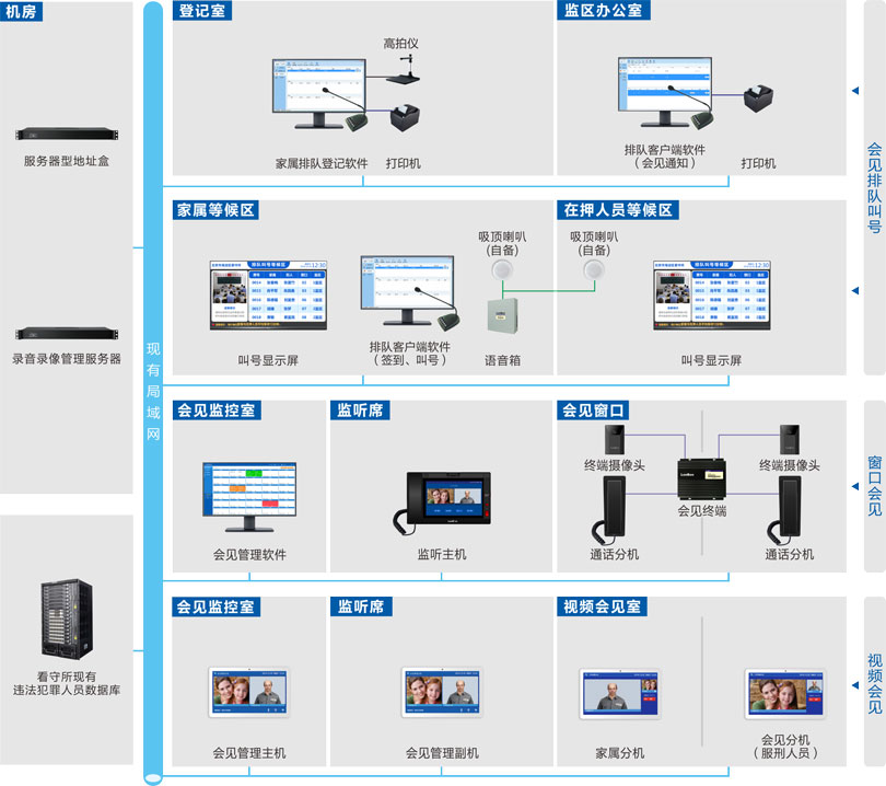 通話計時:會見管理主機可顯示家屬與在押人員的通話時間,方便民警查看。