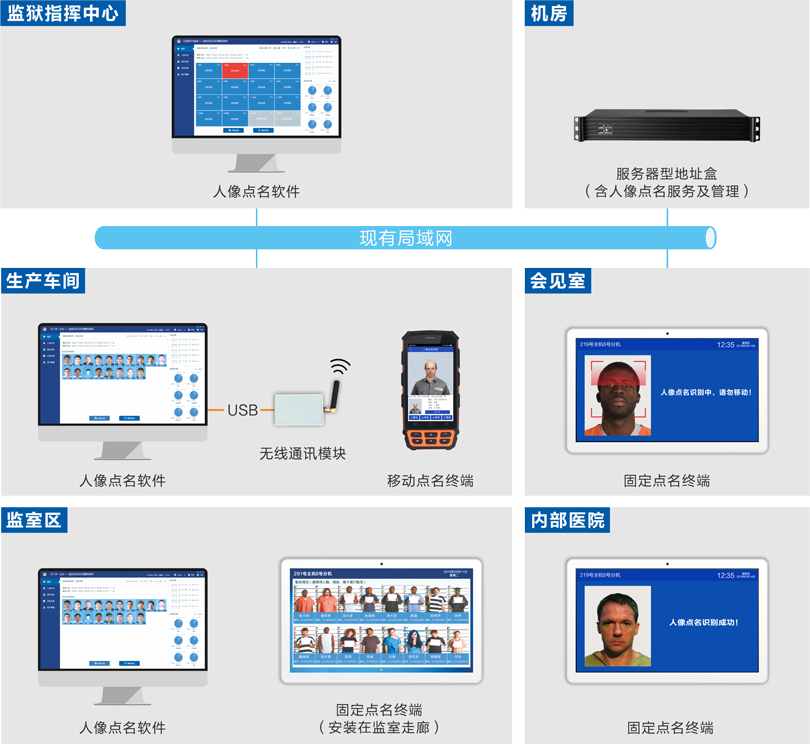 民警和在押人員進出在固定點名終端上進行身份核驗記錄,可進行外出或進入登記,登記完成后人員自動統(tǒng)計到對應區(qū)域。